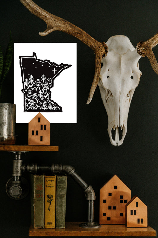 “North Star State” Fine Art Print | Minnesota Collage Art, Moody, Rustic, No AI
