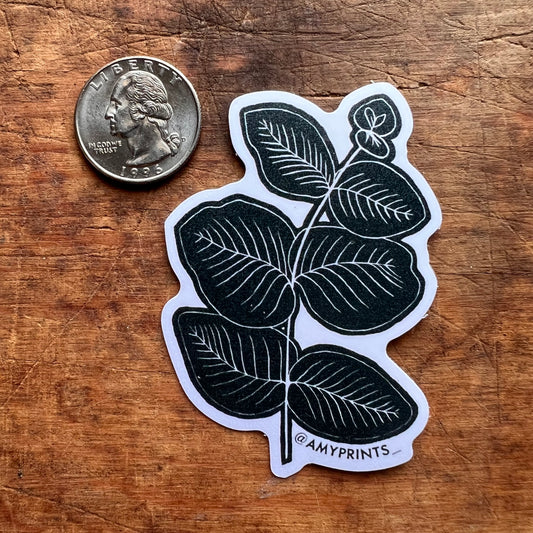 “Cinarea” Eucalyptus 3 Inch Sticker | Linocut Block Print Eco-Friendly Sticker