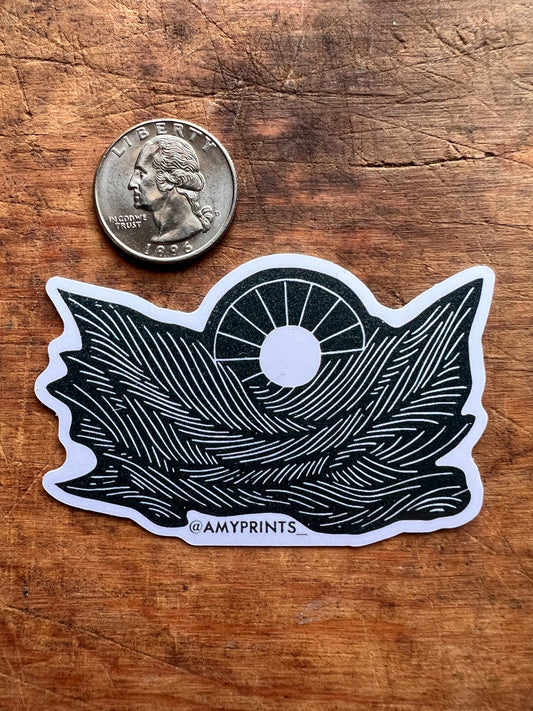 “Sunwave” 3 Inch Sticker | Linocut Block Print Eco-Friendly Sticker