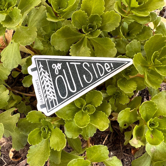 “Go Outside!” 3 Inch Sticker | Linocut Block Print Eco-Friendly Sticker