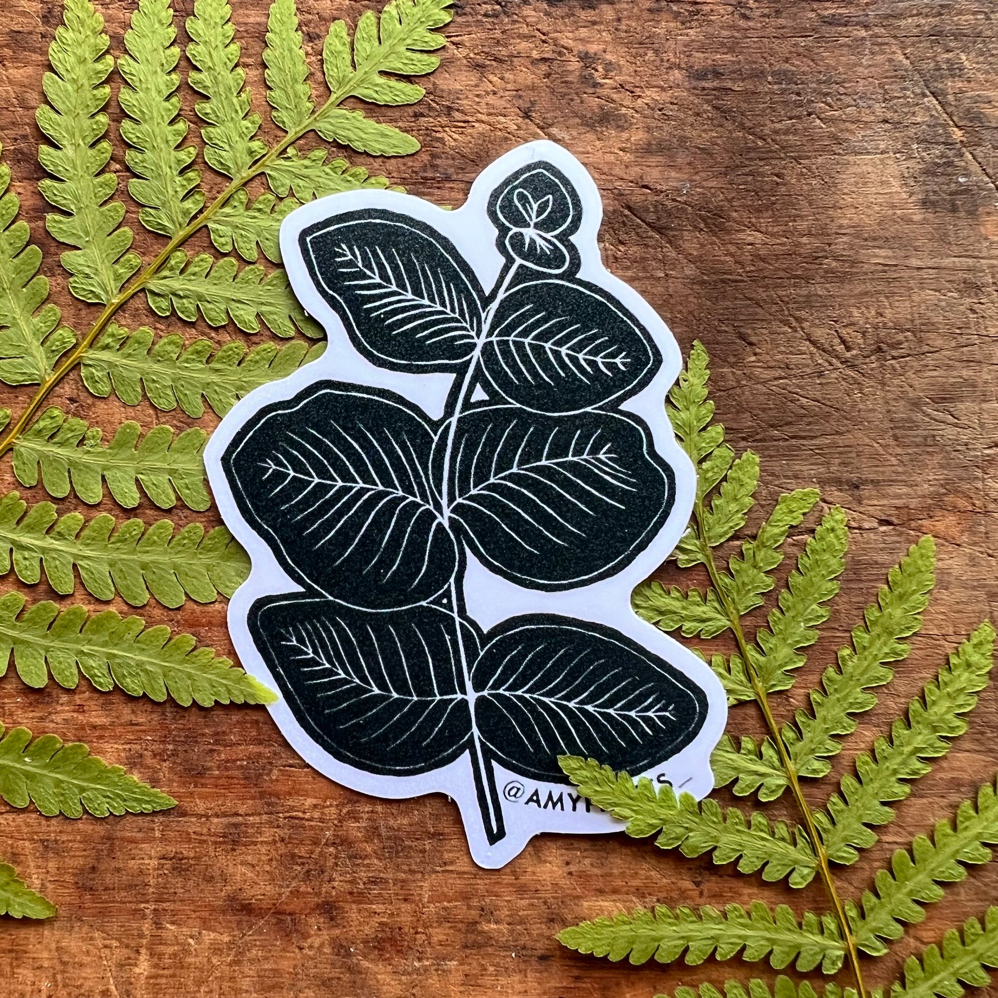 “Cinarea” Eucalyptus 3 Inch Sticker | Linocut Block Print Eco-Friendly Sticker