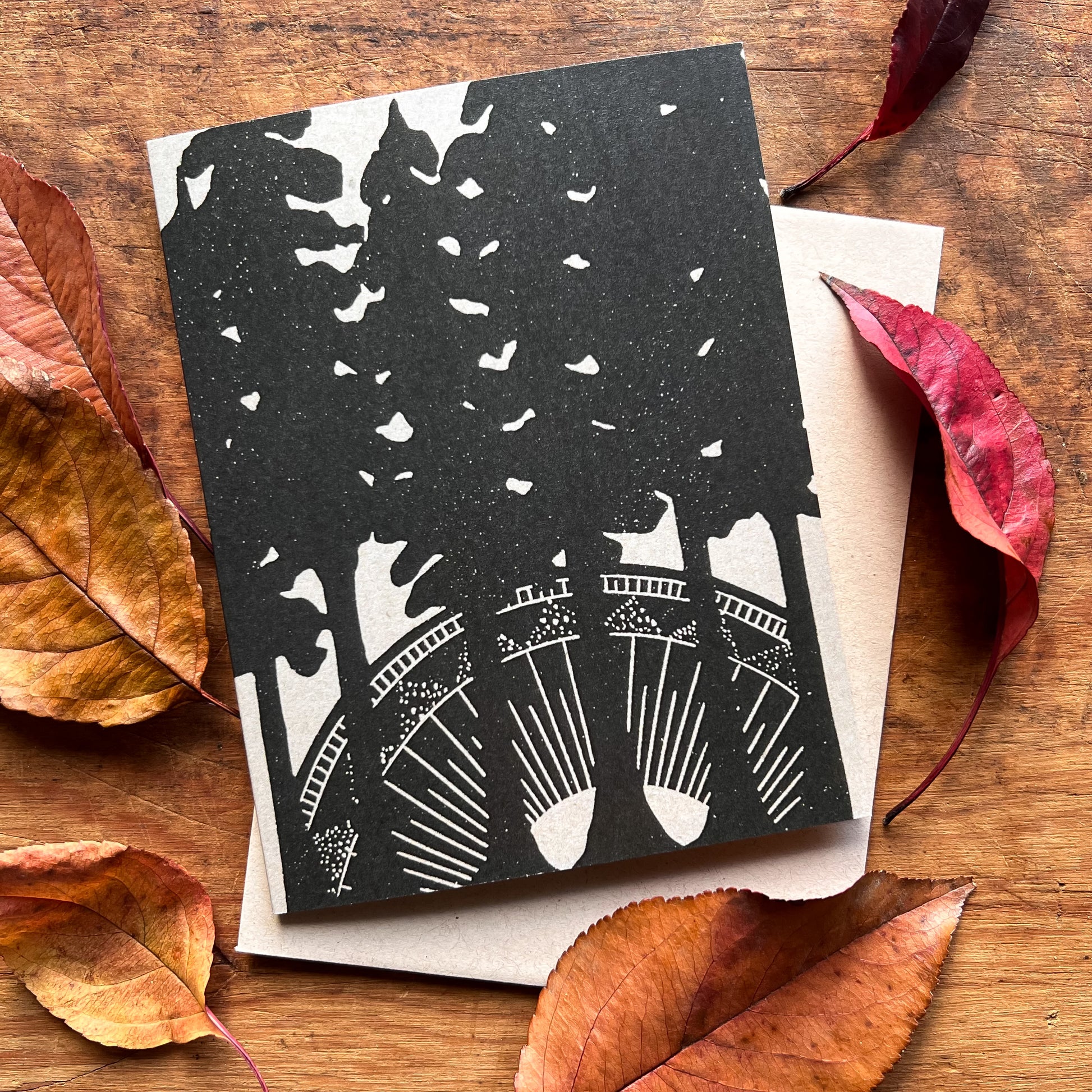 Send greetings that celebrate the sunrise that ushers in a new day with my Early Light greeting cards! Each card features a cropped motif from the original linocut print “Early Light,” and is locally printed on sturdy 100% recycled paper for added texture and interest. Available in both individual cards or as a box set of 6. 4.25x5.5” inches (A2 folded size).