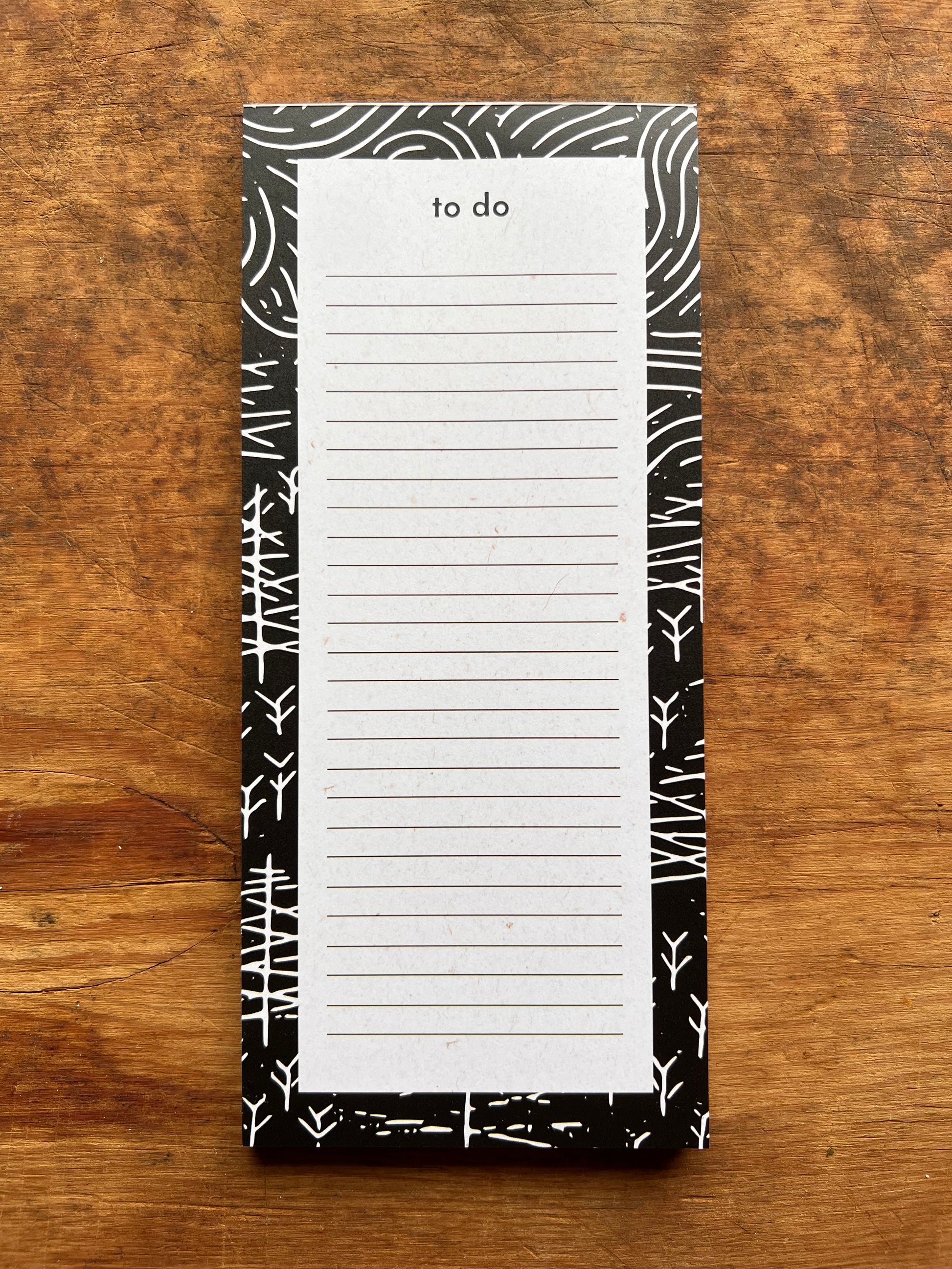 Pine Forest To Do List Notepad 4x9” | 50 Sheet Linocut Illustrated Notepad