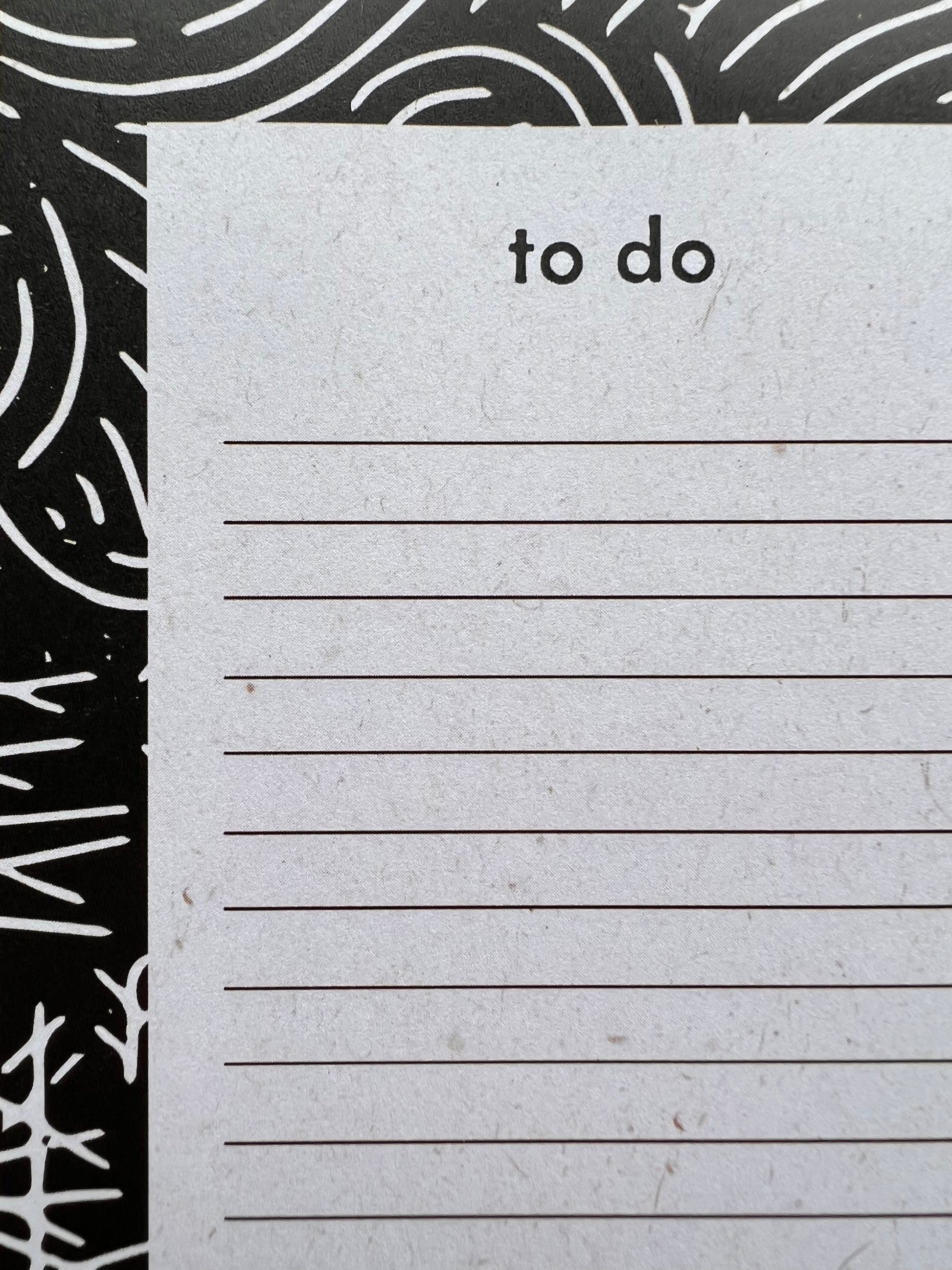 If you’re someone who loves jotting down tasks, goals, and reminders, then this is the perfect addition to your stationery collection. Printed with my best-selling “Pine Wandering” linocut print design on an earthy paper background, this notepad is as beautiful as it is functional. Each notepad is mounted on a 100% recycled kraft backing board and printed by a fellow small business, so you can feel good about making a sustainable and small business-friendly choice while staying organized. At 4x9” it’s also the perfect size for on the go, gift giving, the home office, or anywhere you need to tackle what needs doing. Onward to productivity!