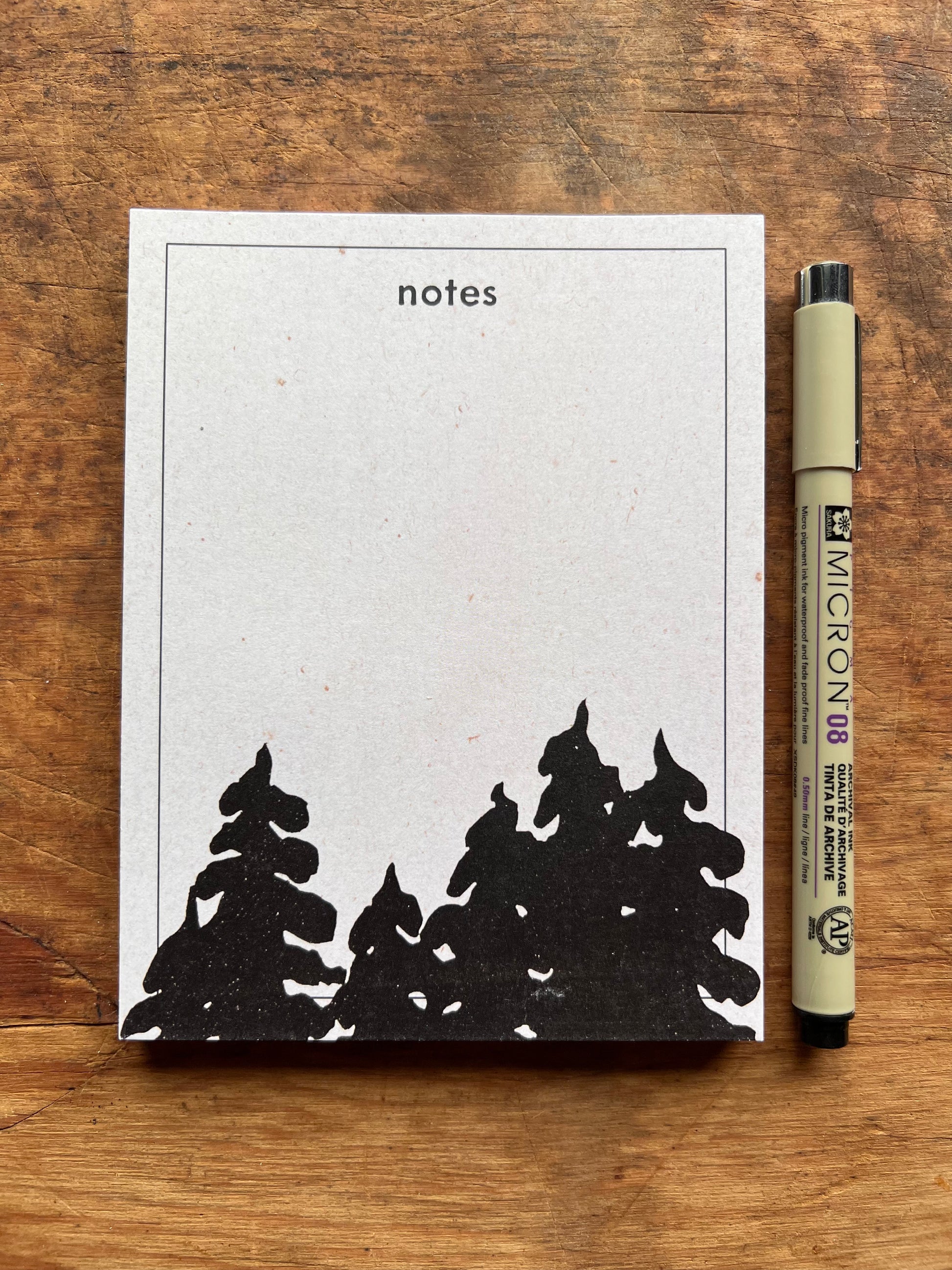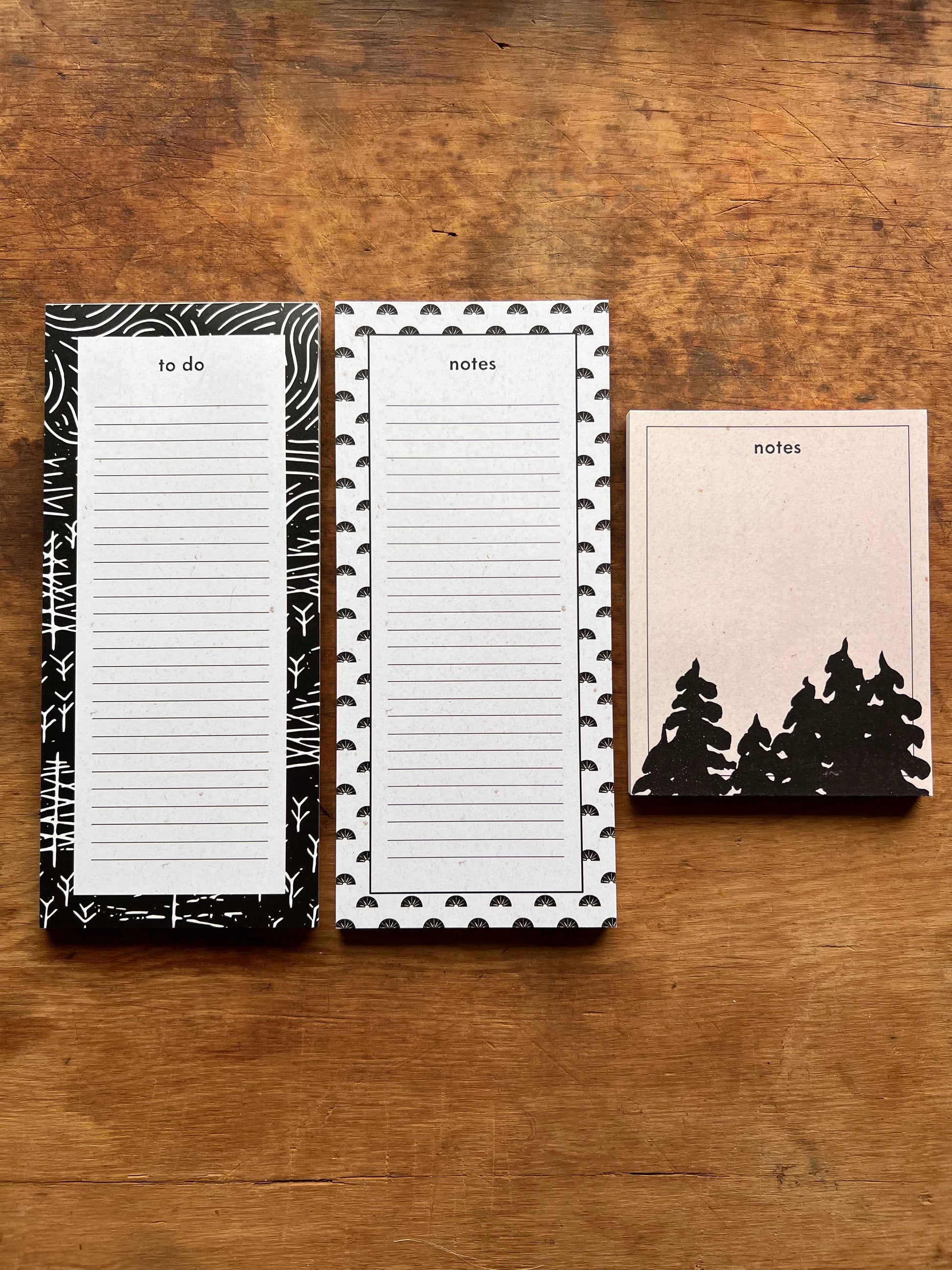 Set of 3 Productivity Notepads 4.25x5.5” and 4x9” | 50 Sheet Linocut Illustrated Notepads