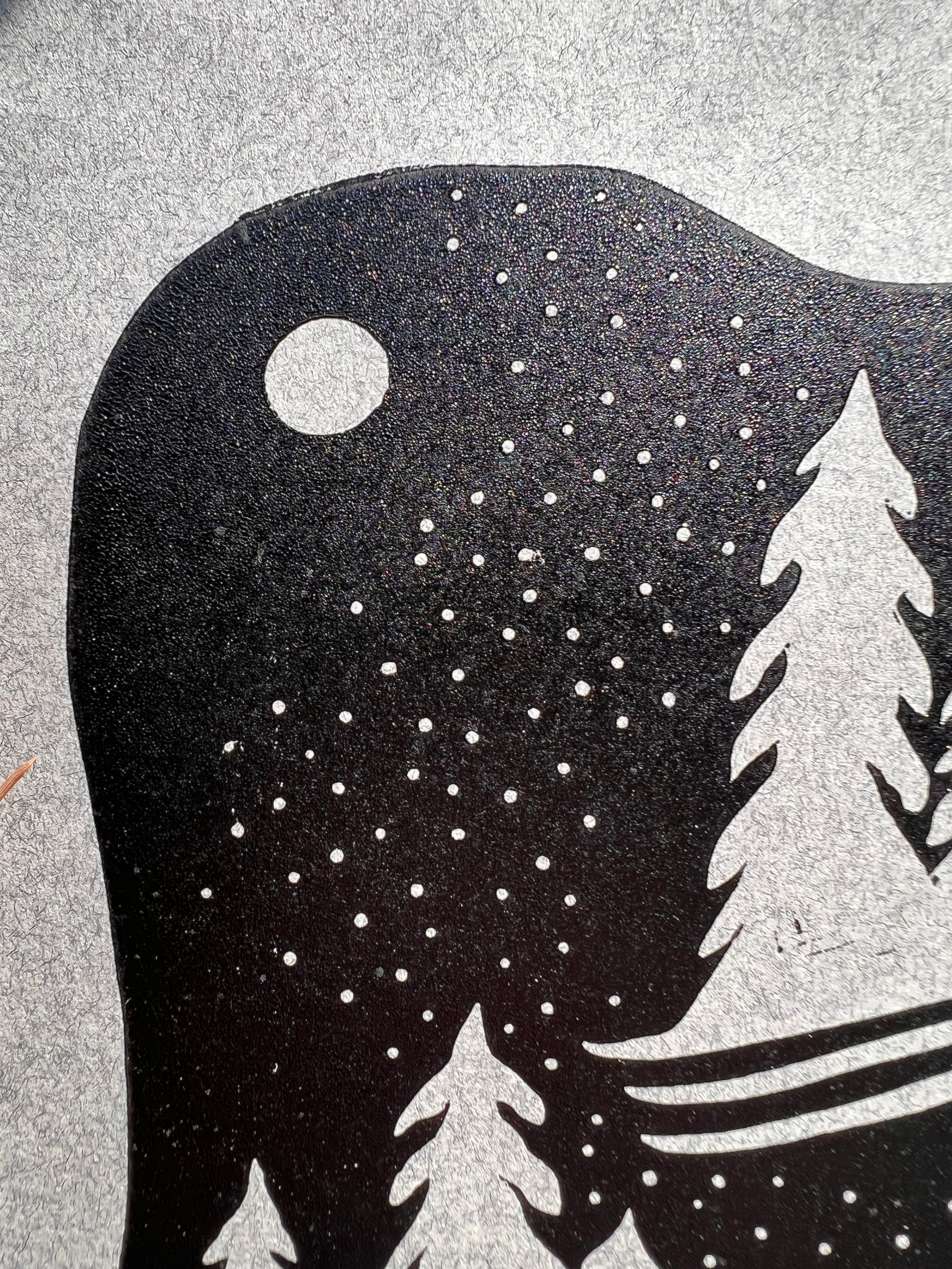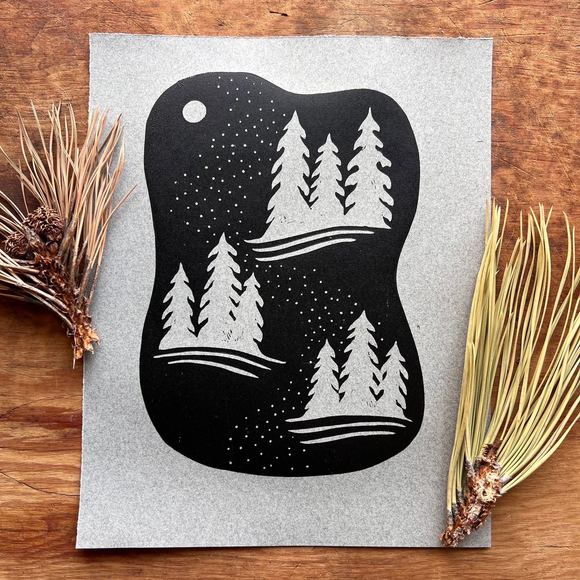 “Star Trail" Linocut Print 8x10" | Hand Printed Black and Tan Block Print