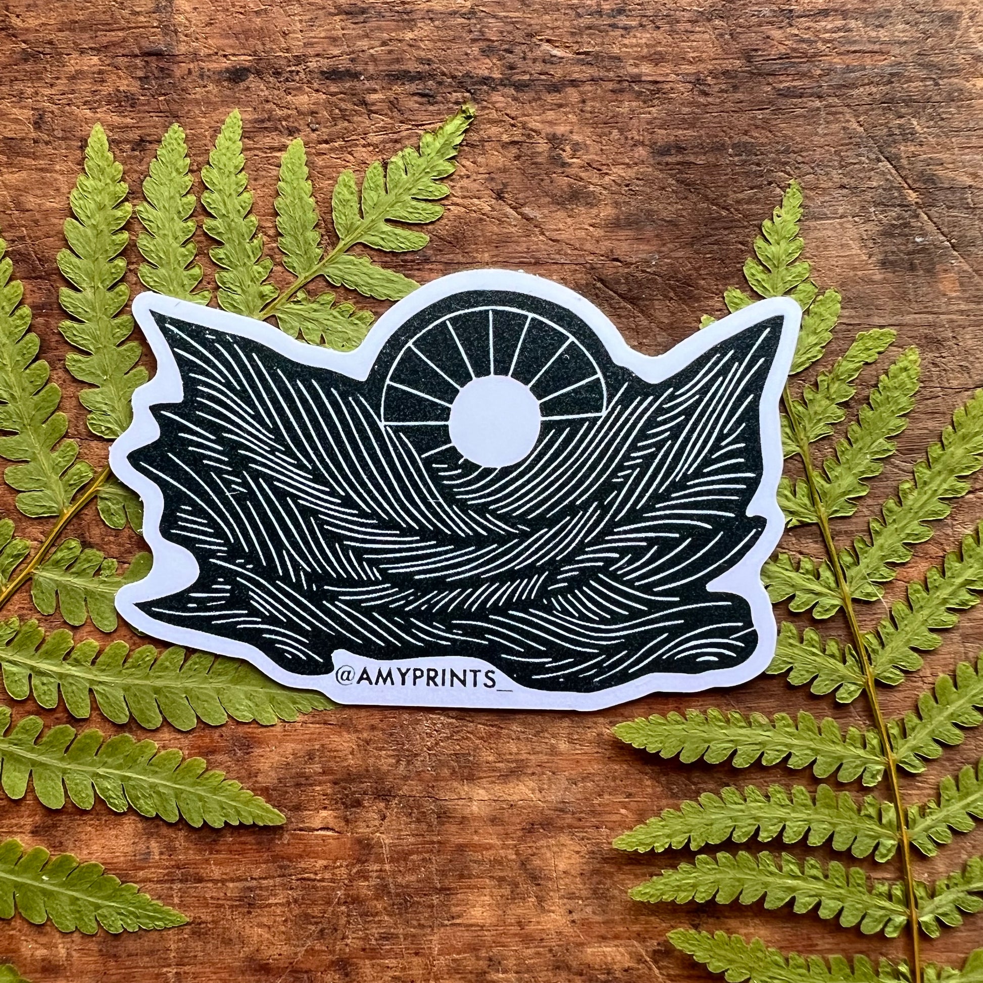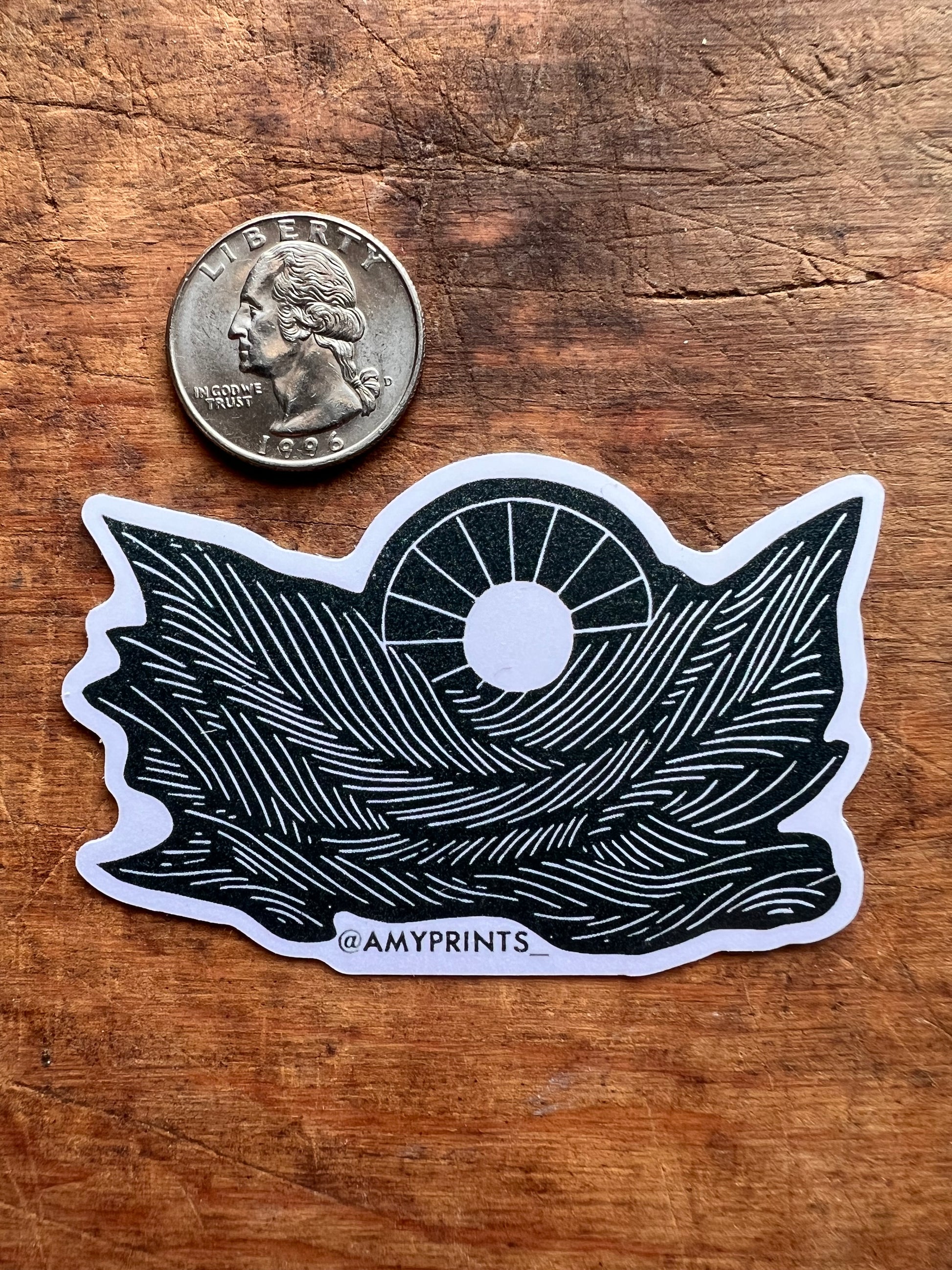 “Sunwave” 3 Inch Sticker | Linocut Block Print Eco-Friendly Sticker